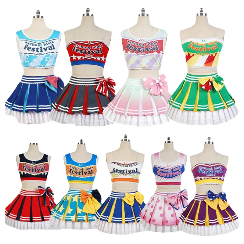 Love Live Cheerleaders Cosplay Costumes Kotori Minami Sonoda Umi Nozomi Tojo Eli Ayase Nine Girls C