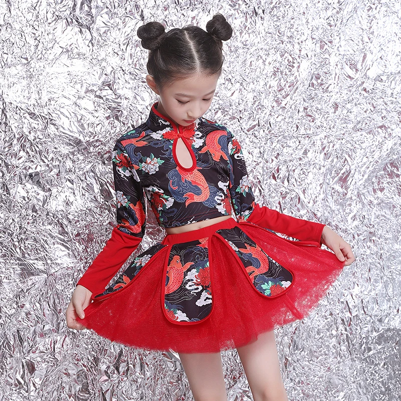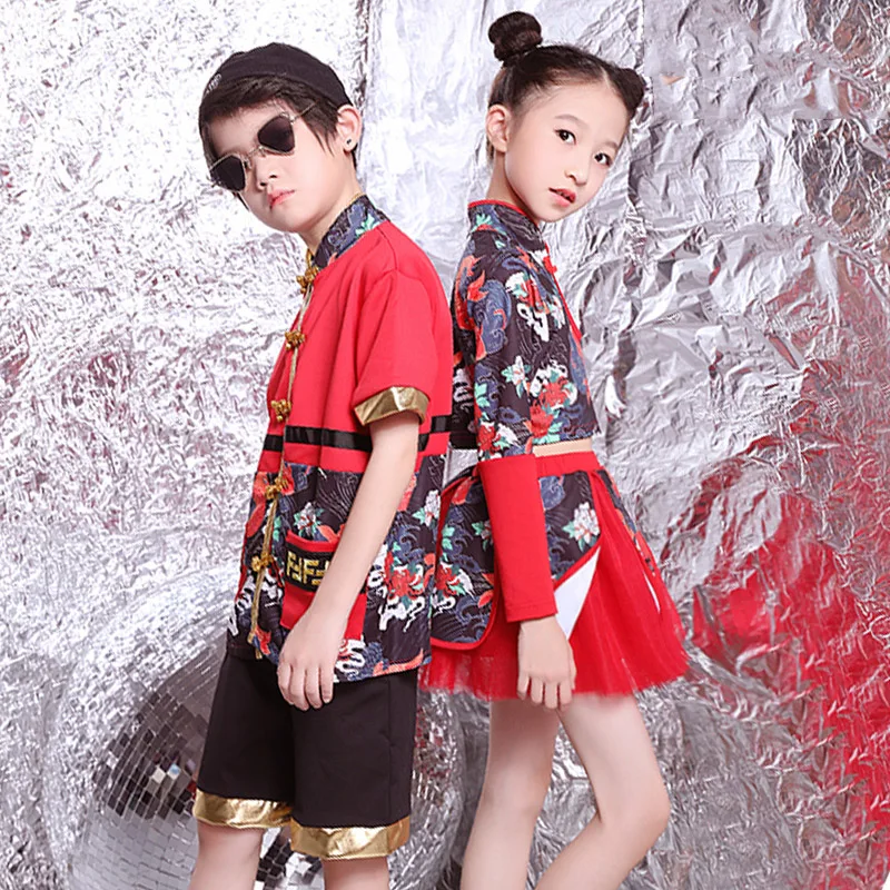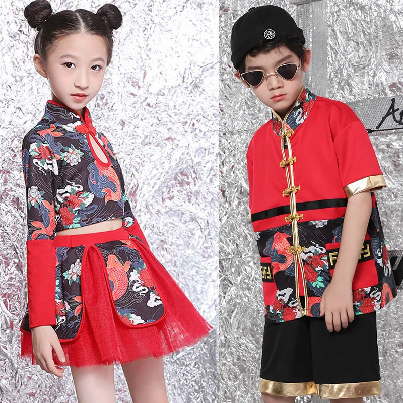 Jazz Dance Costumes Kids Chinese Style Hip Hop Clothing Cheerleader Outfit Children Stage Dancing P