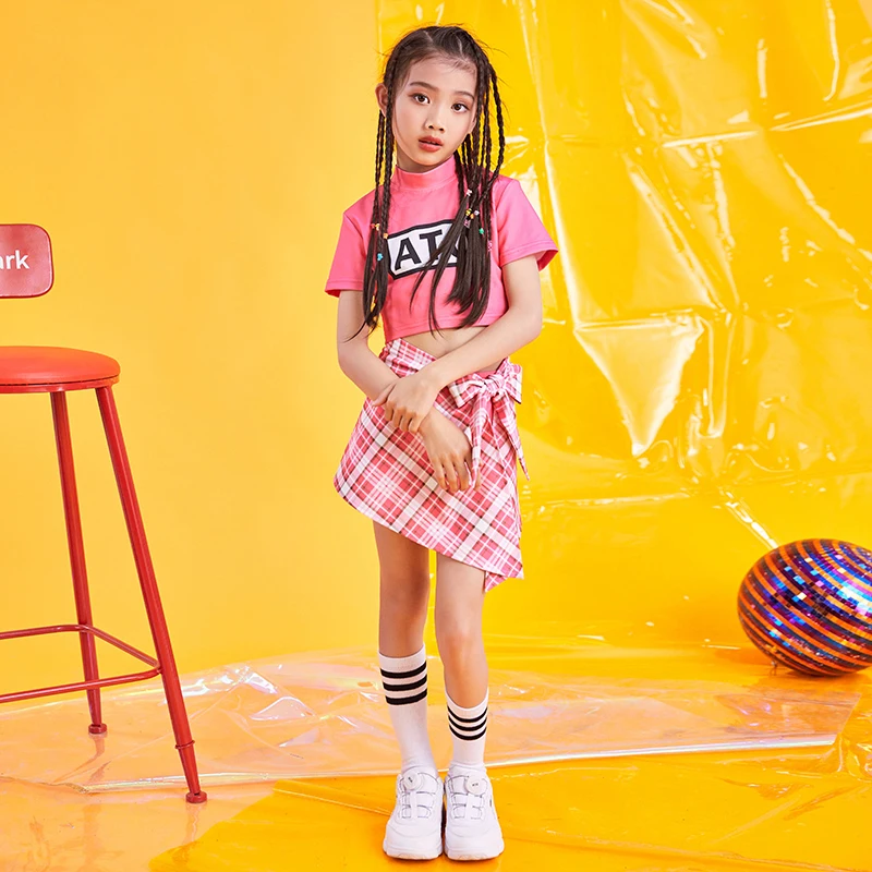 HOT Sale Jazz Stage Costumes Girls Pink Tops Skirts Cheerleader Costume Kids Hip Hop Performance Clothing Mo