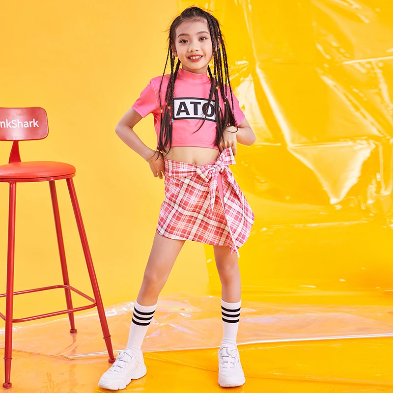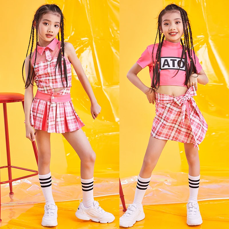 Jazz Stage Costumes Girls Pink Tops Skirts Cheerleader Costume Kids Hip Hop Performance Clothing Mo